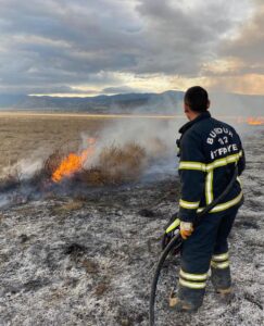 Burdur merkez Askeriye Köyü ile Burdur Gölü sahili arasında kalan kuru otluk alandan  akşam üzeri 16.00 sıralarında bilinmeyen bir sebeple alevler yükseldi.