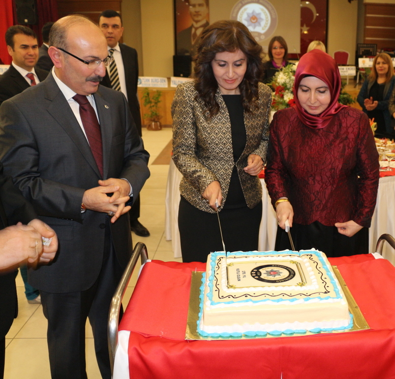 Kokteylde 170’nci yıl pastası Vali Hasan Kürklü’nün eşi Nesibe Kürklü ve Emniyet Müdürü Eyüp Özüdoğru’nun eşi Münüse Özüdoğru tarafından kesildi.