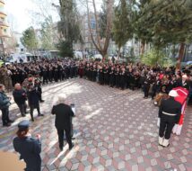 Elibol için Bucak İlçe Emniyet Müdürlüğü’nde cenaze töreni düzenlendi. Törene polisin meslektaşları, ailesi hastaneden tekerlekli sandalye ile gelen eşi katıldı.