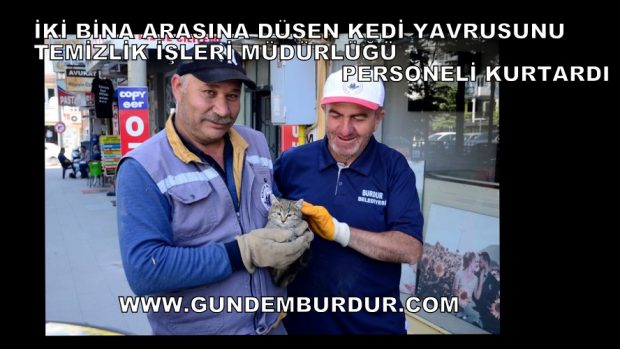 BURDUR’da iki bina arasındaki 3 metrelik boşluğa düşen yavru kediyi Temizlik İşleri Müdürlüğü personeli kurtardı.