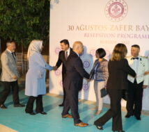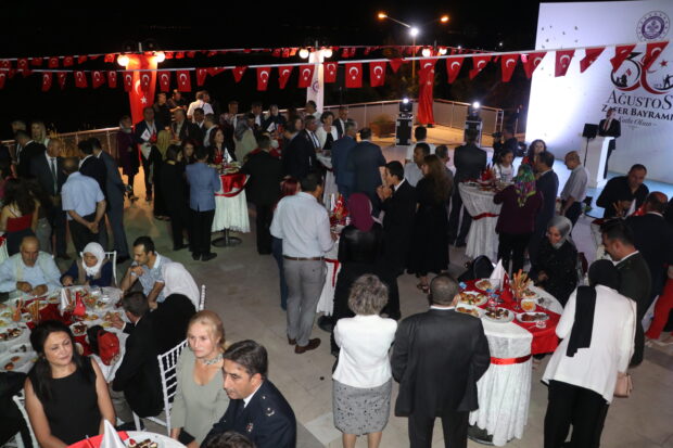 Resepsiyona gelenleri eşi Hatice Arslantaş ile karşılayan Vali Arslantaş, 30 Ağustos’un bir olma ruhuyla yazılan muhteşem bir destan olduğunu söyledi. Arslantaş; “30 Ağustos 6 yüzyılın yorgunluğuyla artık doğal ömrünü tamamlayan Osmanlı Devleti’nden Türkiye Cumhuriyeti Devleti’nin zümrüdü Anka misali küllerinden yeniden doğmasının tarihidir” diye konuştu.