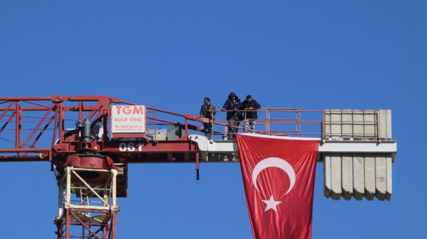 BURDUR’da 4 işçi yaklaşık 2 aydır maaşlarını alamadıkları iddiasıyla inşaatta bulunan Kule vince çıkarak eylem yaptı.