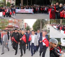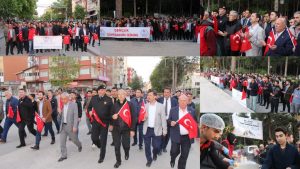 Daha sonra Hacı Mahmut Camiinden Şeihtliğe kadar yürüyüş gerçekleştirildi. Yürüyüşe İl Emniyet Müdürü Arif Çankal, İl Jandarma Komutanı Albay Orhan Kılıç, Gençlik Merkezi üyeleri ile vatandaşlar ellerinde Türk bayrakları ile ‘Şehitler Ölmez Vatan Bölünmez’ diye slogan atarak şehitliğe kadar yürüdü.