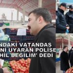 Köle, alışveriş yapmak için pazara gelen 70 yaşındaki bir vatandaşı uyarırken vatandaş ‘ben cahil değilim’ dedi. Köle “cahil değilim diyorsun ama kurallara uyalım” deyince vatandaş “ben ne yiyeceğim” diye cevap verdi.