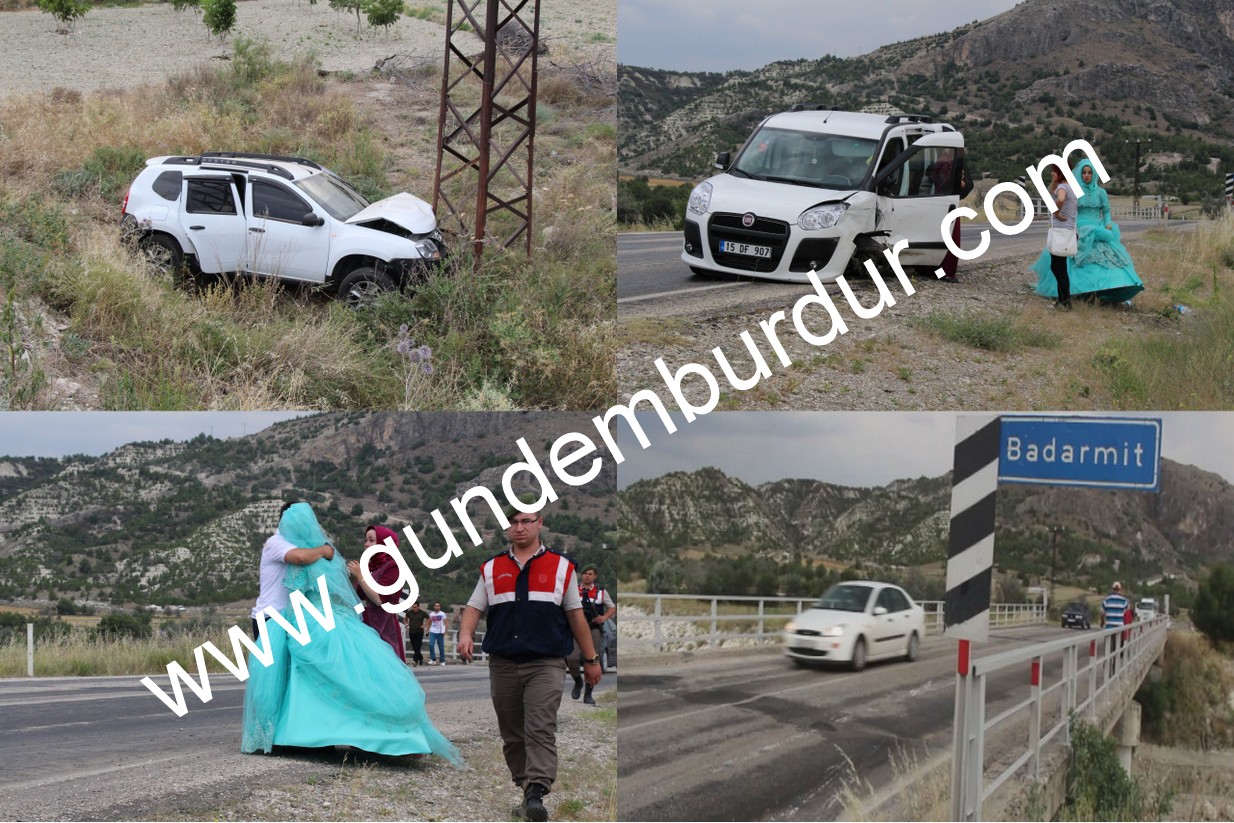 Burdur-Fethiye Karayolu 15’inci Kilometrede meydana gelen trafik kazasında Kemer İlçesi’nde yapılacak nişan törenine gitmekte olan25 yaşındaki Durmuş Akgün yönetimindeki 15 SA 978 Plâkalı Cip Dirmil’den Burdur’a gelmekte olan düğün konvoyunda bulunan 50 yaşındaki Ramazan Tanrıöver’in kullandığı hafif ticari araçla Badarmıt Köprüsü üzerinde çarpıştı. Akgün’ün kullandığı cip çarpmanın etkisiyle yol kenarındaki şarampole uçtu.