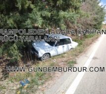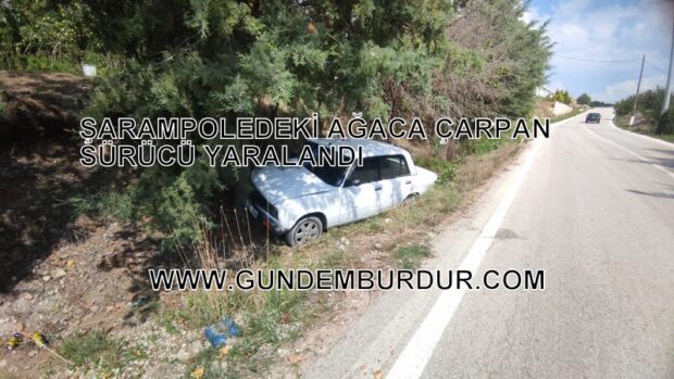 BURDUR’da şarampole düşerek ağaca çarpan otomobilin sürücüsü yaralandı,