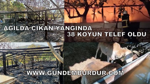BURDUR’da koyun ağılında çıkan yangında 38 koyun telef oldu.