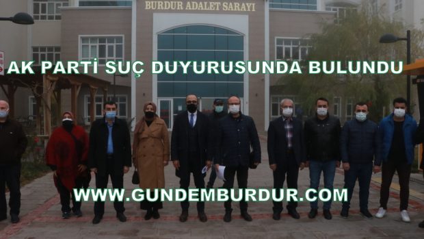 AK Parti İl Başkan Vekili Mustafa Özboyacı, Merkez İlçe Başkanı Hüseyin Okan ve partililer Burdur Adliyesi’ne gelerek üç isim hakkında suç duyurusunda bulundu. Adliye önünde basın mensuplarına açıklama yapan İl Başkan Vekili Mustafa Özboyacı, “AK Parti Burdur İl Teşkilatını temsilen Fikri Sağlar, Can Ataklı ve İlker Başbuğ hakkında Türk Ceza Kanunu’nun ‘halkı kin ve düşmanlığa tahrik etme’ başlığını taşıyan 216’ncı maddesine istinaden Cumhuriyet Başsavcılığımıza suç duyurusunda bulunduk” dedi.