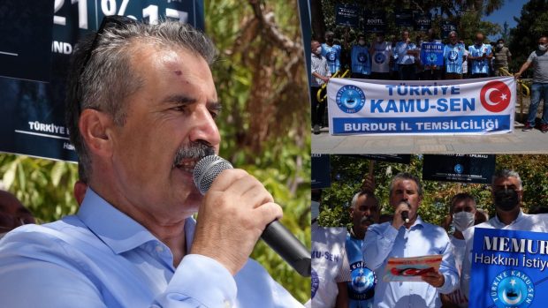 TÜRKİYE Kamu Çalışanları Sendikaları Konfederasyonu Burdur Şube Başkanı Orhan Akın Cumhuriyet Meydanı’nda basın açıklaması yaptı.