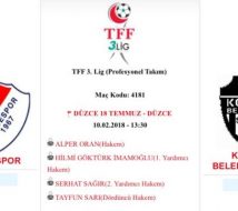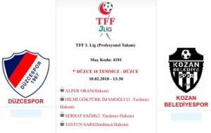 Düzce 18 Temmuz stadında yarın (10.02.2018) oynanacak karşılaşmada Oran’ın yardımcılıklarını Hilmi Göktürk İmamoğlu ve Serhat Sağır yapacak. Karşılaşmanın dördüncü hakemi ise Tayfun Sarı.