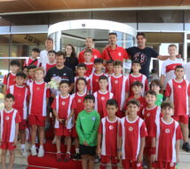 Antalyaspor’lu futbolcular ve teknik direktör Emre Belözoğlu genç futbolcuların formalarını imzaladı, fotoğraf çektirdi.