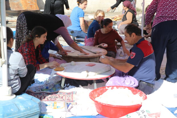 Çelen için İtfaiye Müdürü Mehmet Ali Ballak ve itfaiye personeli ile aileleri tarafından imece usulü pişi pişirildi.