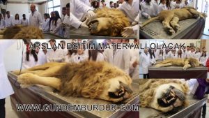 Anatomi Anabilim Dalı Başkanı Prof.Dr. Özcan Özgel arslanın Antalya Hayvanat Bahçesinde yıldırım çarpması sonucu rahatsısızlandığını tedavi edildiğini ancak öldüğünü söyledi. Özgel “Arslan Veteriner Fakültemize bağışlandı. Anatomi Anabilim Dalı tarafından eğitim materyali olarak değerlendirilecek. Öncelikle iç organları incelenecek. Kemikleri çıkarılarak iskelet olarak değerlendirilecek.” dedi.