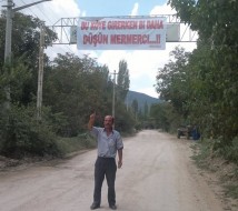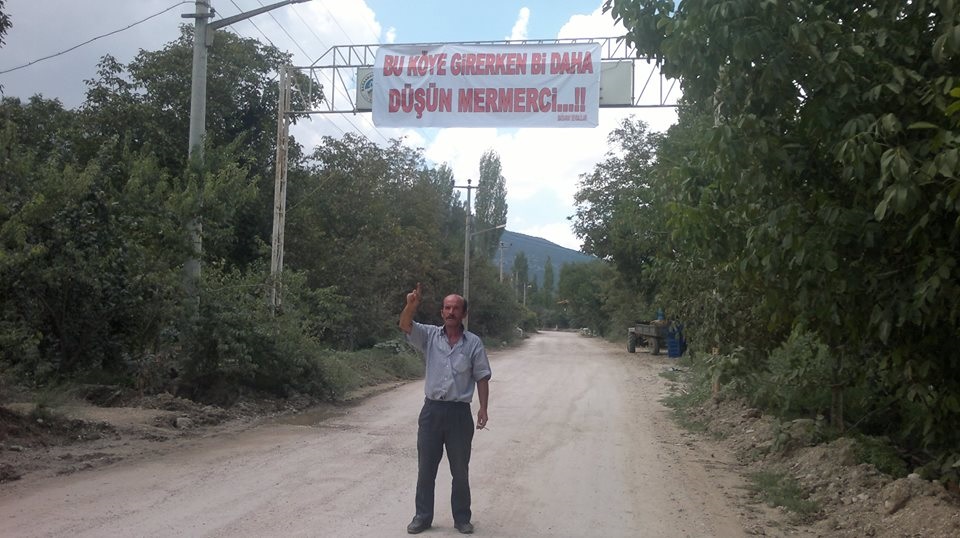 Bağsaraylılar Köylerinin girişine büyük bir bez afiş asarak“ BU KÖYE GİRERKEN BİR DAHA DÜŞÜN MERMERCİ!” yazdılar.
