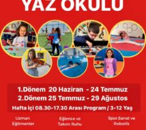 3-12 Yaş aralığında 20 Haziran-24 Temmuz ve 25 Temmuz- 29 Ağustos tarihleri arasında 2 ayrı dönem halinde düzenlenecek yaz okulunda deneyimli eğitmenler ile öğrenciler sanatsal ve sportif faaliyetlerde bu yaz bol bol eğlenecek.