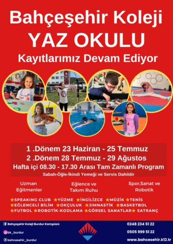Yaz okuluyla ilgili açıklamalarda bulunan Kampüs Müdürü Tamer Bayar “Burdur’da kaliteli eğitimin öncülüğünü yapan Burdur Bahçeşehir Kolejimiz 10 yıldır olduğu gibi bu yıl da yaz tatilini verimli geçirmenin tek adresi.
