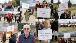Jandarmanın geniş güvenlik önlemi aldığı eylem sırasında site sakinleri ellerinde, ‘Başakevleri seviyoruz, beton santrali istemiyoruz’, ‘Hırs vicdanın önüne geçmiş’, ‘Beton Santrali Başakevleri öldürür’ yazılı dövizlerle beton santralinin yapılacağı araziye kadar yürüdü.