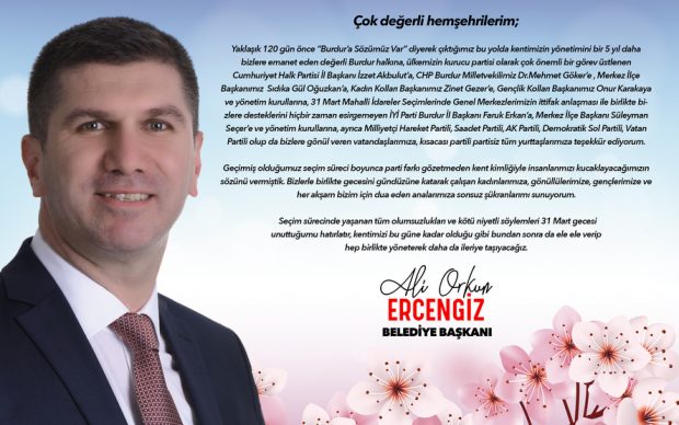 Anasayfa > Burdur, Genel, Güncel > BELEDİYE BAŞKANI ERCENGİZ TEŞEKKÜR MESAJI