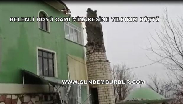 Burdur’un Kemel İlçesi Belenli Köyü’ camisinin minaresine yıldırım düştü. Minare büyük zarar gördü. Belenli Köyü’nde etkili olan yağış nedeniyle saat 15.00 sıralarında düşen yıldırım Belenli Köyü camisinin minaresine isabet etti. Minare büyük zarar gördü.