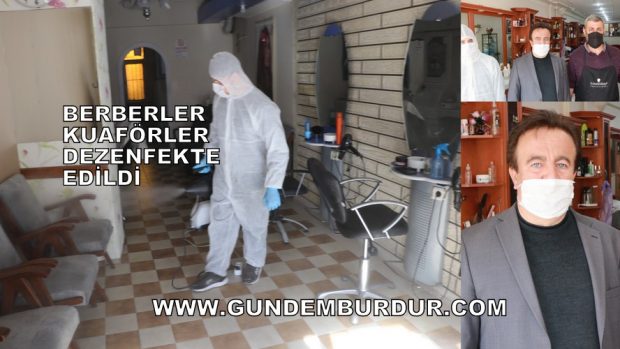 BURDUR’da Berberler, Kuaförler ve Güzellik Salonları dezenfekte ediliyor.