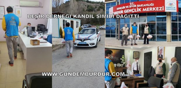 Burdur Beşir Derneği üyeleri Miraç Kandilinde görev başındaki kamu görevlilerine Kandil Simiti dağıttı.