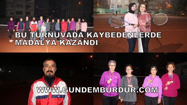 Burdur’da kadın sporcular arasında düzenlenen Ters Köşe Tenis Turnuvası’nda kaybedenler de madalya kazandı.