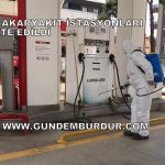 Bucak Belediyesi ekipleri, Belediye’ye ait Lukoil ve Moil istasyonlarında dezenfekte işlemi yaptı.