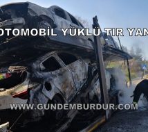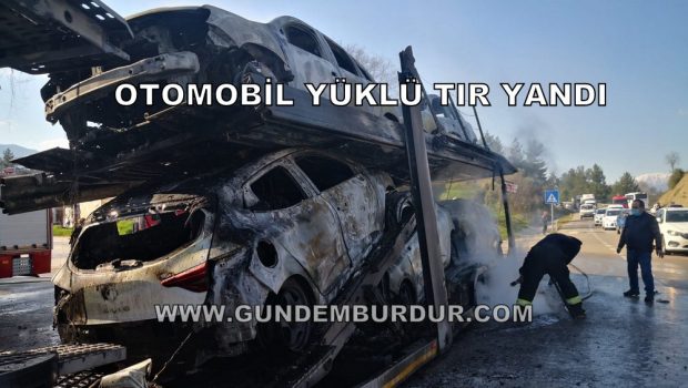 BUCAK’TA SIFIR OTOMOBİLLERİN YÜKLÜ OLDUĞU TIR YANDI