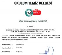 Burdur Bahçeşehir Koleji, Milli Eğitim Bakanlığı ile Türk Standartları Enstitüsü (TSE) işbirliğinde yürütülen “TSE Covıd-19 Hijyen, Enfeksiyon Önleme ve Kontrol Belgelendirme Programı” şartlarını yerine getirip, yapılan denetimler sonucunda “TSE Covid-19 Okulum Temiz Belgesi”ni almayı başardı. Böylece Burdur Bahçeşehir Koleji, sahip olduğu kalite ve mükemmeliyet belgelerine bir yenisini daha ekledi.