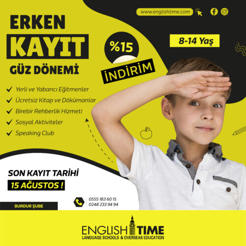 Her yaştan öğrenciye eğitim veren Burdur English Time Dil Okullarında erken kayıtlar başladı!