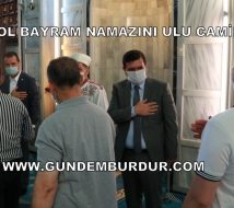 Burdur Valisi Ali Arslantaş, Ak Parti Burdur Milletvekilleri Bayram Özçelik ve Yasin Uğur, Garnizon Komutanı Albay Cenk Baburşah, İl Genel Meclisi Başkanı Murat Akbıyık, MAKÜ Rektörü Prof.Dr. Adem Korkmaz, İl Jandarma Komutanı Albay Orhan Kılıç, İl Emniyet Müdürü Ümit Bitirik vatandaşlarla saf tutarak bayram namazını Ulu Camii’nde kıldı.