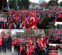 Yürüyüş sırasında vatandaşlar, ‘Ne Mutlu Türküm Diyene’, ‘Polise Uzanan Eller Kırılsın’, ‘Kana kan intikam’, ‘Mustafa Kemal’in askerleriyiz’ sloganları attı.