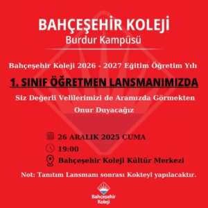 Burdur Bahçeşehir Koleji İlkokulu, yenilikçi ve geliştirici vizyonu ile marka isimleri bünyesine katmaya devam ediyor. Bahçeşehir Koleji 2026-2027 eğitim öğretim dönemi 1. Sınıf öğretmen kadrosunu 26 Aralık 2025 Cuma günü Saat 19.00’da Bahçeşehir Koleji Burdur Kampüsü Kültür Merkezinde düzenleyeceği Öğretmen Tanıtım Lansmanı ile velilere tanıtacak.