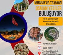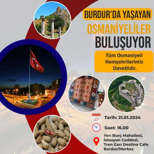 Burdur’da yaşayan Osmaniyeliler, 21 Ocak 2024 tarihinde Burç Mahallesi İstasyon Caddesi, Tren Garı Destina Cafe’de bir araya gelecek.