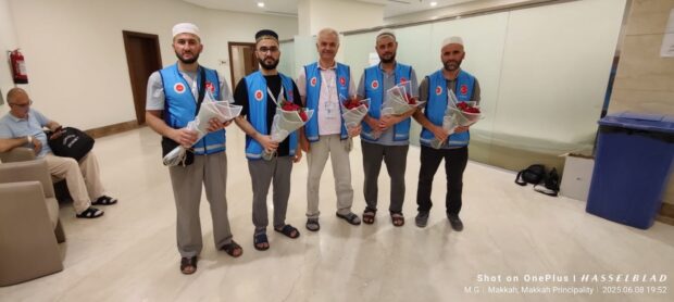 Burdur’dan 12 Mayıs tarihinde Hac vazifesi için Kutsal Topraklara giden ve hacı olan Burdurlular “24 saat mesai mefhumu gözetmeden hacı adaylarımız için özverili bir şekilde çalışan din görevlilerimiz Kafile Başkanı Bucak Müftüsü İbrahim Keser ile din görevlileri İbrahim Ertaş, Mehmet Gövyaprak, Bilal Talayman, Hüseyin Ayaz ve Nazife Atay hocamıza özverili çalışmalarından dolayı teşekkür ederiz. Hocalarımıza gül buketleri ile şükranlarımızı sunduk” dediler.