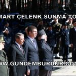 Şehitlikteki anıtta gerçekleşen Çelenk sunma törenine Vali Hasan Şıldak, Garnizon Komutanı Albay Cenk Baburşah, Belediye Başkanı Ali Orkun Ercengiz ve Muharip Gaziler Derneği İl Temsilcisi Hasan Okyar’ın anıta çelenk sunmasının ardından Kur’an-ı Kerim okundu ve İl müftüsü Enver Türkmen tarafından dua edildi.