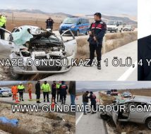 Korkuteli’nde bir yakınlarının cenazesinden dönen Resul Candan (40) yönetimindeki 15 SD 284 Plakalı otomobil sürücünün direksiyon hakimiyetini kaybetmesi soncu Burdur-Tefenni karayolunun 38’inci kilometresinde refüje savrularak takla attı.