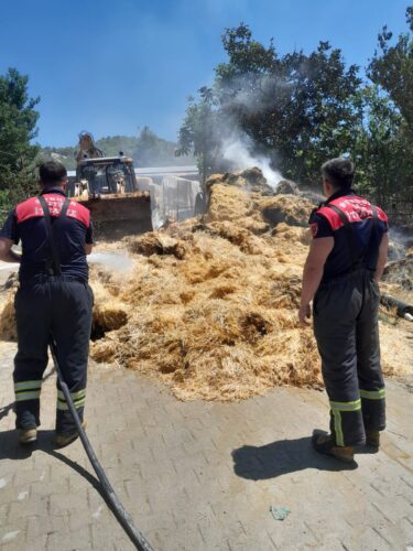yangında 250 balya saman zarar görerek kullanılmaz hale