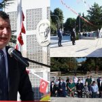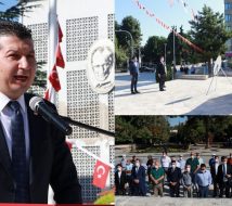 İzzet Akbulut tarafından Atatürk Anıtına çelenk sunulmasının ardından Saygı duruşunda bulunuldu ve İstiklal Marşı okundu.