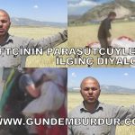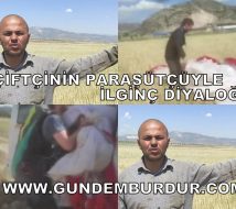 BURDUR’da çiftçi Kazım Öz (30), tarlasına inen yabancı uyruklu yamaç paraşütçüsüyle diyaloğunu kamerayla kaydetti.