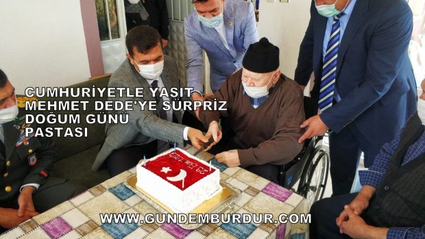 Vali Ali Arslantaş, Burdur merkez Büğdüz Köyü’nde oturan 29 Ekim 1923 doğumlu Mehmet Altınkaynak’ı Garnizon Komutanı Albay Mehmet Fatih Ören, Garnizon Komutanı Albay Mehmet Fatih Ören, Adalet Komisyonu Başkanı Hacı Süleyman Arslan, İl Emniyet Müdürü Ümit Bitirik, İl Jandarma Komutanı Albay Hakan Başaklıgil ve MAKÜ Rektörü Prof.Dr. Adem Korkmaz ile ziyaret ederek sürpriz doğum günü pastası kesti.