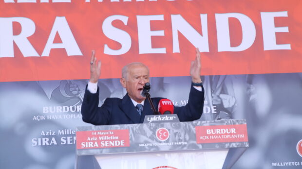 Milliyetçi Hareket Partisi Genel Başkanı Devlet Bahçeli burdur’da düzenlediği mitingde partililere hitap etti. Seçim mitingleri kapsamında Isparta’dan sonra Burdur’a gelen Bahçeli Şeker Meydanı’nda halka hitap etti. Bahçeli şunaları söyledi; ” Muhterem Burdurlular, Değerli Dava Arkadaşlarım, Saygıdeğer Hanımefendiler, Beyefendiler, Hepinizi sevgi ve saygıyla selamlıyorum. Bizleri buluşturan, görüştüren, kavuşturan Cenab-ı Allah’a şükrediyorum. Yurt içinde ve yurt dışında hayatın zorluklarına fedakârca göğüs geren tüm vatandaşlarımıza en halisane selamlarımı iletiyorum. Yarın kutlayacağımız Anneler Günü münasebetiyle bütün annelerimizin bu özel gününü tebrik ediyor, saygılarımı sunuyorum. Burdur’da hayat ve varlık mücadelesi veren her vatandaşımı bağrıma basıyorum. “Aziz Milletim Sıra Sende” temasıyla düzenlediğimiz bu açık hava toplantımıza teşrif eden, gücümüze güç ekleyen, heyecanıyla önümüzü aydınlatan Burdurlu kardeşlerime şükranlarımı sunuyorum. Yarın yapılacak Cumhurbaşkanlığı ve 28’inci Dönem Milletvekilliği Genel Seçimlerinin ülkemizin dirliğine, milletimizin birliğine, demokrasimizin geleceğine, insanımızın huzur ve refahına hayırlı ve kalıcı sonuçlar getirmesini Allah’tan niyaz ediyorum. Bunun yanında seçimlerin sağduyulu, sakin ve demokratik olgunlukla gerçekleşmesini diliyorum. Bugünkü toplantımızın tertip ve temininde emeği geçen tüm dava arkadaşlarımı içtenlikle kutluyorum. Hepiniz hoş geldiniz, safalar getirdiniz diyorum. Burdur vatan şairimiz Mehmet Akif Ersoy demektir, Burdur büyük tarihçimiz Halil İbrahim Kafesoğlu’nun emanetidir. Korkma, diye başlıyor İstiklal Marşımız, Korkma! Korkma, varsın ihanet karanlık sokaklarda kol gezsin, Korkma, varsın işbirlikçiler hainlerle elele versin, Korkma yine bütün dünya karşımıza geçsin, Korkma, sönmez bu şafaklarda yüzen al sancak, Sönmeden yurdumun üstünde tüten en son ocak. Kararımız budur, kaderimiz budur, kavlimiz budur. İstiklal Marşımız bir cesaretin, bir faziletin, bir ferasetin, bir imanın, gıpta edilecek vatan ve millet sevgisinin abideleşmiş manzum eseridir. Bu eser milletimizin ebedi duruşudur. Türk milletini korkutacak, korkuyla sindirecek, korkudan korkuya sürükleyecek herhangi bir muhasım güç dünya üzerinde ne görülmüş ne de duyulmuştur. Herkes hesabını buna göre yapmalıdır. Bizim terk edecek bir vatanımız yoktur. Bizim çizilecek bir sınırımız yoktur. Bizim bölünecek bir milletimiz yoktur. Bizim yıkılacak bir devletimiz yoktur. Ve bizim vazgeçecek tek bir insanımız dahi yoktur. İftiralar milletimizi yıldıramaz. Kaset kumpasları, sosyal medya teröristleri, küresel komplolar Türkiye’nin önünü kesemez. 14 Mayıs’ta sağlam iradeyle, doğru kararı tescilleyip Türk ve Türkiye Yüzyılının ilk adımını atacağız. Bu ülkeye sevdalı olmanın kolay olmadığını biliyoruz. Nitekim bu ülkeyi sevmek yürek ister. Ezan demek, bayrak demek, Cumhuriyet demek yürek ister. Dil, din ve ırk ayrımı yapmadan yaşayalım demek yürek ister. Terörü bitirmek, Kandil’i yerle bir etmek yürek ister. Tanklara kafa tutmak, milli iradeyi ortaya koymak, vatana sahip çıkmak yürek ister. Malazgirt demek, İstanbul’un fethine sahip çıkmak yürek ister. Masaya elini vurmak, dünyada oyun kurucu olmak yürek ister. İnancına, Türklüğüne, tarihine sahip çıkmak yürek ister. Mavi Vatan, Kıbrıs, Can Azerbaycan demek yürek ister.