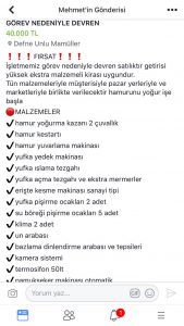 Çeşmedamı Mahallesi’nde faaliyet gösteren Defne Unlu Mamuller işletmesi görev nedeniyle devren satılık. İrtibat tel:0542 512 60 15
