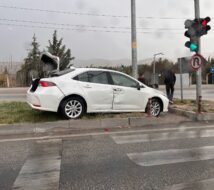 Burdur’da akşam saatlerinde meydana gelen kazada bir otomobil refüje çıktı.
