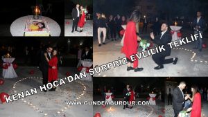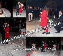 BURDUR’da Bahçeşehir Kolejinde Halk Oyunları öğretmenliği yapan Kenan Kayalarlı iki yıldır birlikte olduğu kız arkadaşına sürpriz evlilik teklifi yaptı.