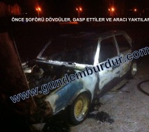 Anasayfa > Burdur, Güncel > DÖVDÜLER, ARACINI GASP ETTİLER VE YAKTILAR