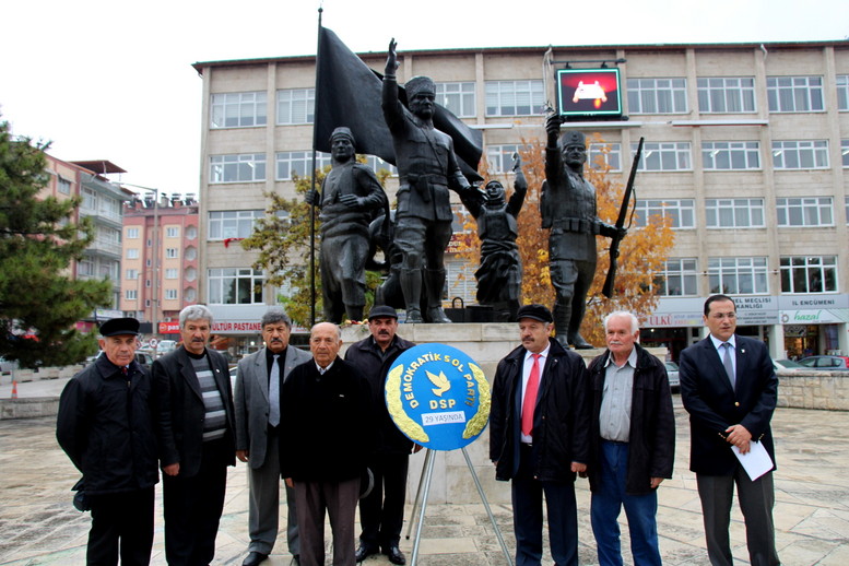Cumhuriyet Meydanında basın açıklamasını İl Yönetim Kurulu Üyesi Teoman Toyman okudu. Toyman DSP’nin 14 Kasım 1985 yılında Bülent Ecevit öncülüğünde zor şartlarda kurulduğunu belirtti.