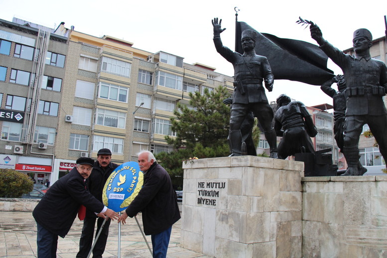 DSP İl Başkanı Ali Ünal partinin kuruluşunun 29. yıl dönümü nedeniyle Atatürk Anıtına çelenk sunma törenine az sayıda partili katıldı.