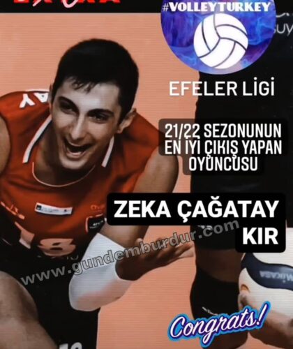 Burdur’lu Milli Voleybolcu Zeka Çağatay Kır, 2021-2022 Efeler Ligi’nde en iyi çıkış yapan oyuncu seçilerek Burdur’un gururu oldu.