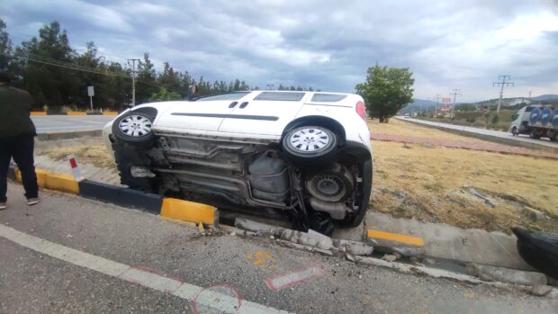 sıralarında Organize Sanayi Bölgesi Kavşağı’nda yağmur nedeniyle kayganlaşan yolda sürücünün direksiyon hakimiyetini kaybetmesi sonucu refüje devrildi.